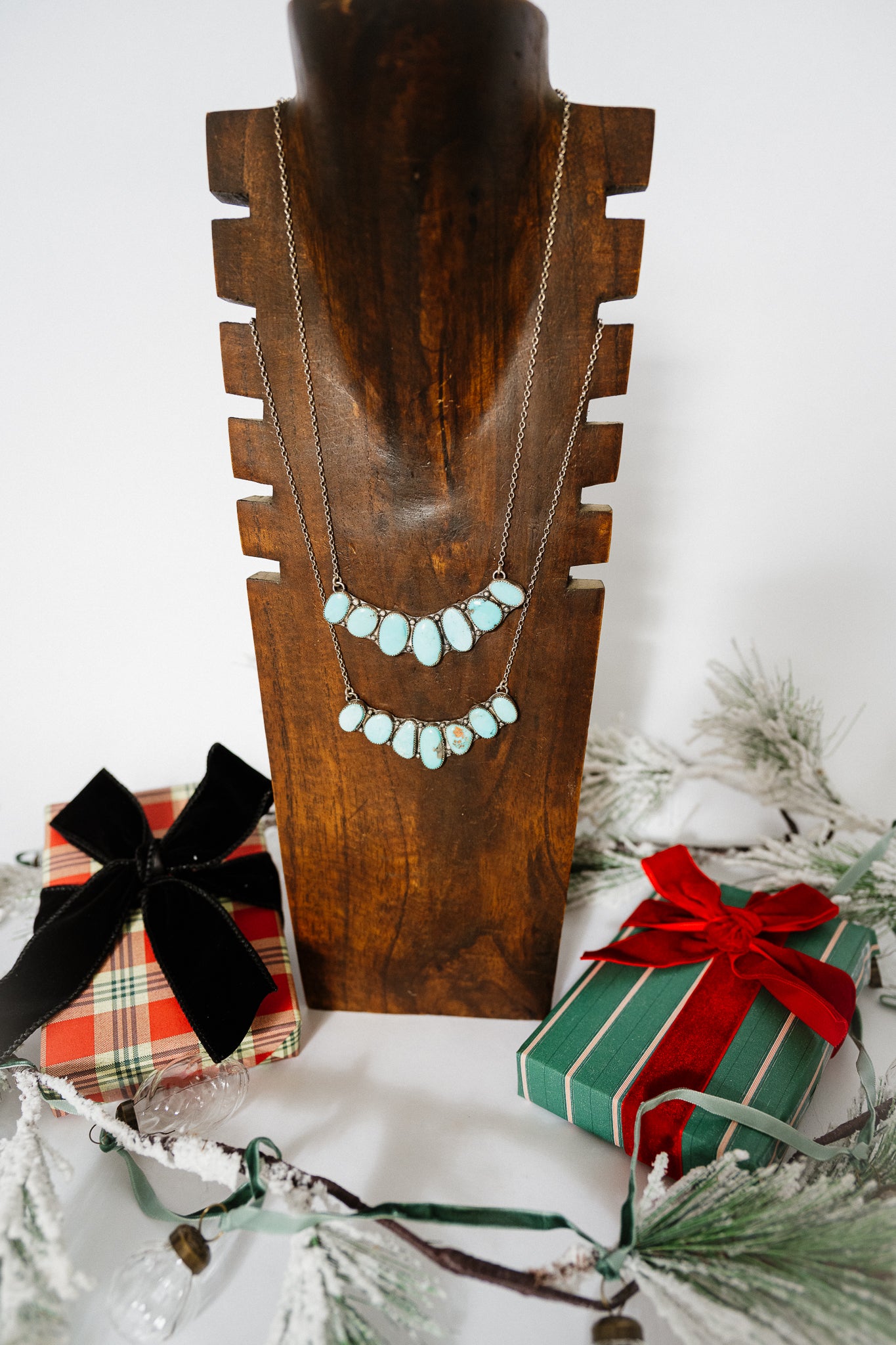 Mexican Sonoran Turquoise - 7 stone bar necklace